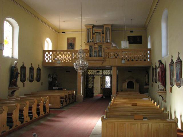 Celkový pohled z presbytáře do lodi kostela